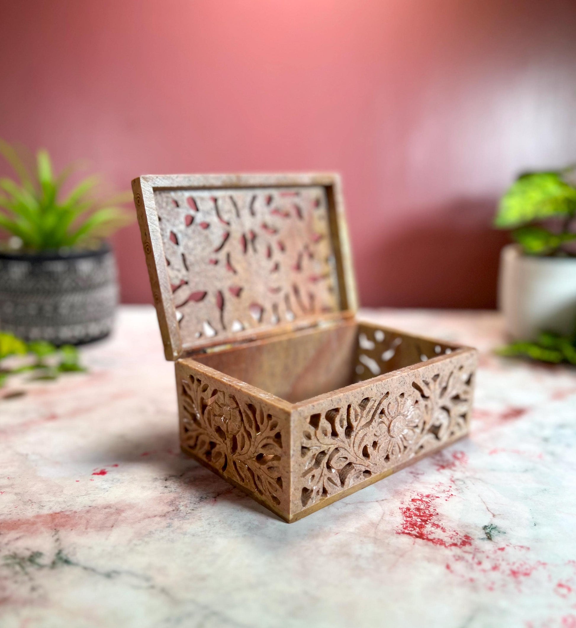 Hand Carved Soapstone Jewelry Trinket Box | Restored Vintage Keepsake Storage