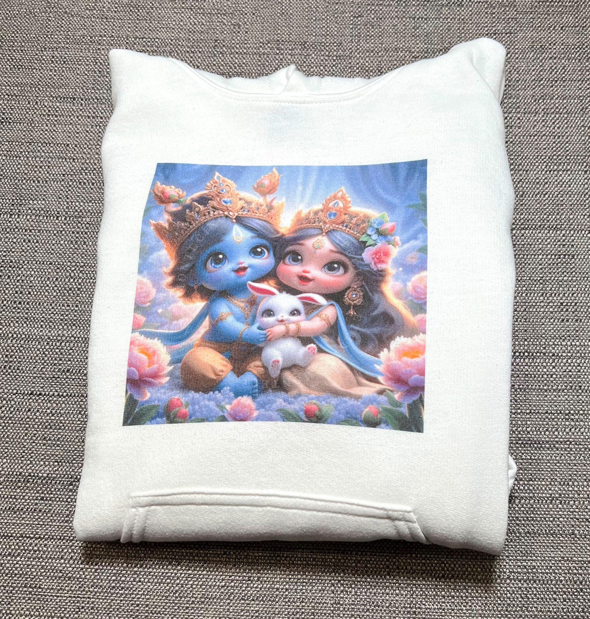 Radha Krishna Kids Hoodie | Hindu Unisex Youth Sweatshirt | Janmashtami Gift - Medium